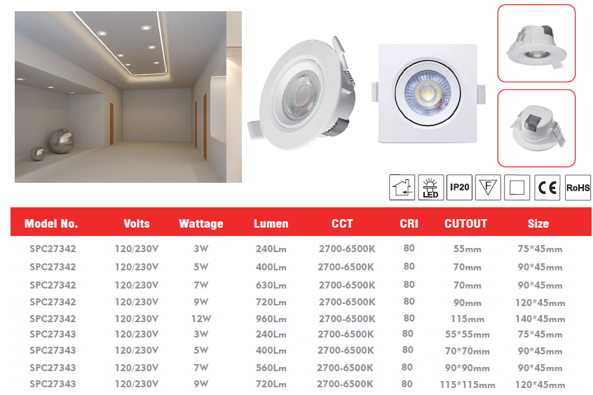 Different color temperature option. Perfect for hallways, living room, kitchens, bedroom, dining room, office and many more commercial or residential applications.