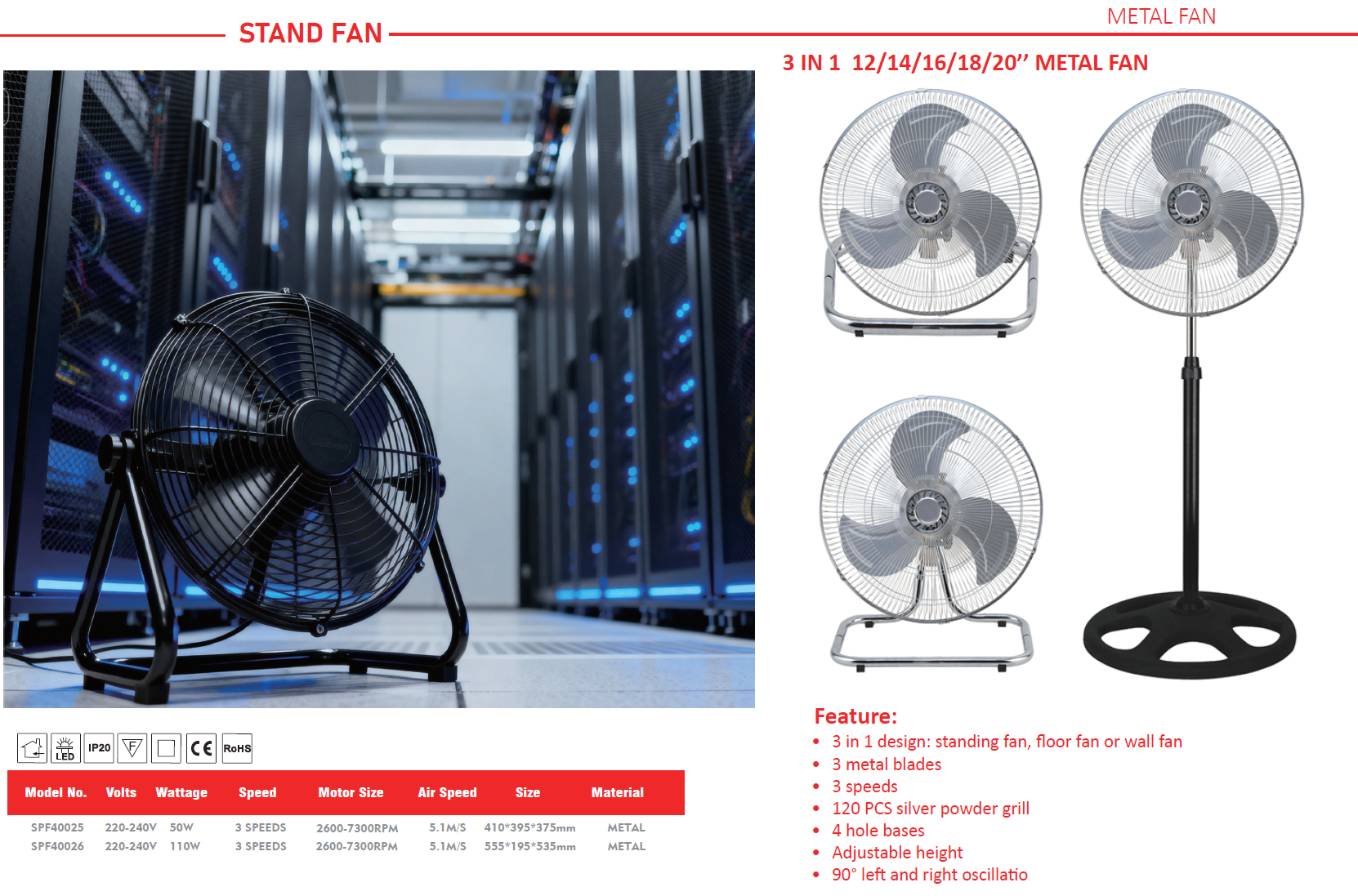 3 in 1 design: standing fan, floor fan or wall fan